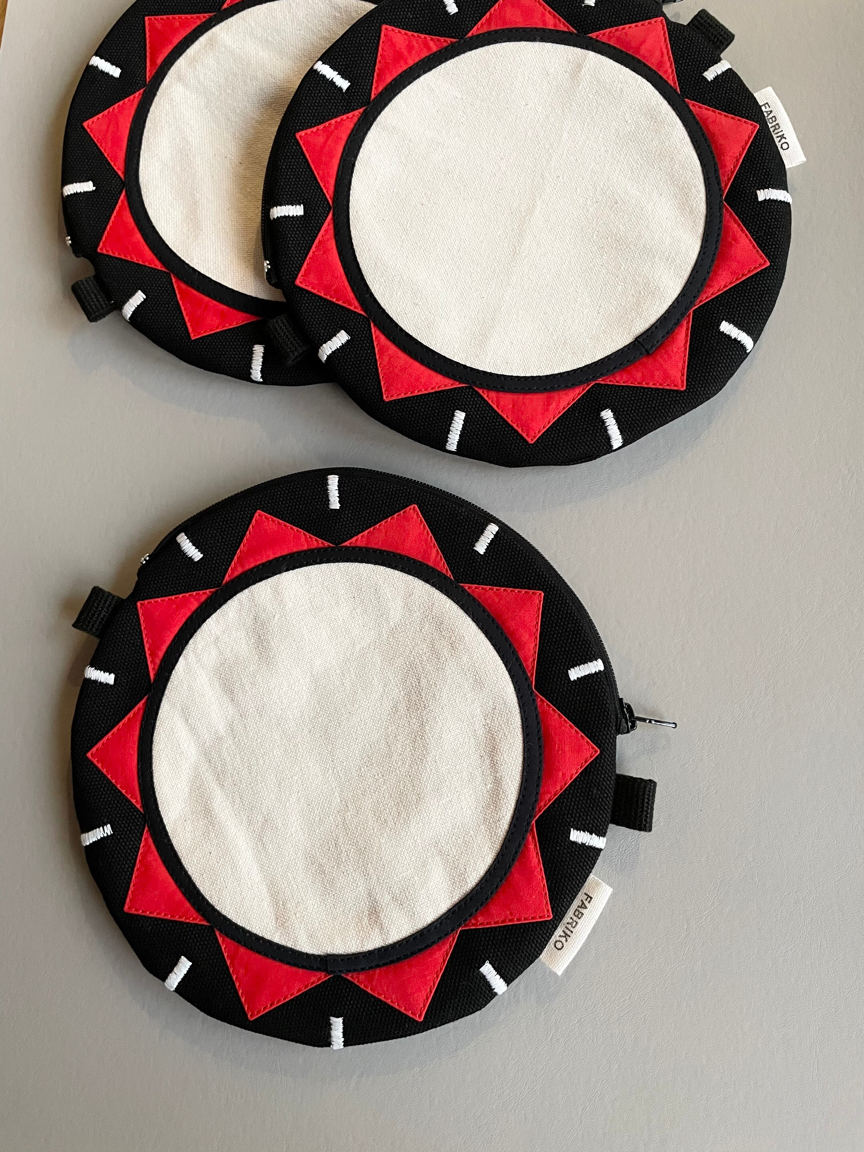 盛岡の伝統文化であるさんさ踊り。その太鼓をモチーフにしたサコッシュです。このサコッシュは、さんさパレードに参加する時はもちろん、浴衣でお祭りに出かける際のスマホや古銭入れなどが入るちょうどいい大きさ。こだわりのデザインと色使いが、踊りの華やかさを一層引き立てます。